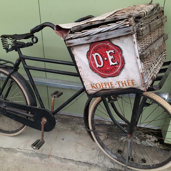 Met deze fietsen werd "in the old days" zonder bijkomende kosten de DE koffie bij de mensen thuis bezorgd. De grap is dat we we steeds vaker weer terug grijpen naar dit oude concept. Jarenlang zijn we met zijn allen naar de supermarkt gegaan om onze boodschappen te doen, maar met de komst van webshops laten we steeds meer producten gewoon weer thuis bezorgen. Deze ontwikkeling zorgt er ook voor dat de kleine speciaalzaken weer in populariteit toenemen, want we hoeven niet meer naar 101 verschillende winkels te rijden, we kunnen heel eenvoudig online dat speciale product bestellen en voordat je het weet staat de bezorger al op de stoep. En die komt dus ook gewoon weer op de fiets....