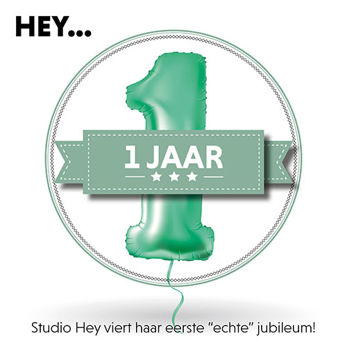 Vandaag is het exact 1 jaar geleden dat Studio Hey officieel gestart is. Dus niet meer parttime naast een baan in loondienst maar voor de echt. Een heugelijk feit, dat uiteraard gevierd zal worden.